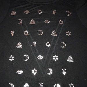 Cute light weight magic tee with a slightly see through triangle design. 70% modal 30%polyester