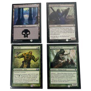 A collection of Magic The Gathering cards featuring a variety of green and black creatures, spells, and enchantments. Designed for strategic gameplay.