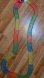 Vibrant toy track with flexible segments. Features red, blue, green, and yellow sections. Perfect for creative play.