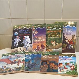 Set of Magic Tree House books. Includes various adventurous titles. Perfect for young readers.