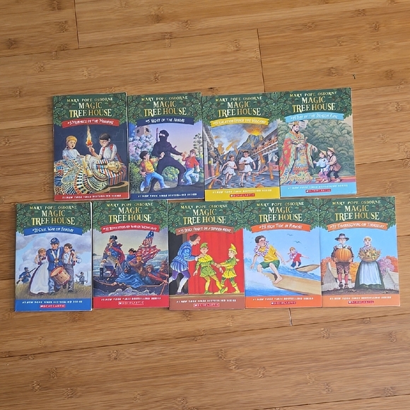 Set of Magic Tree House books. #3,5,13,14,21,22,25,28,27 All in great condition. No issues Open to splitting them up.
