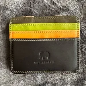 Magic wallet with space for three cards, change, and bills. Leather. Excellent condition.