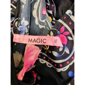 Magic Women's Navy Floral Maxi Dress w/Bell Sleeves & Surplice Neckline. Size XL