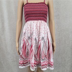 Magic Y2K Pink and White Patterned Women's Dress Smocked Bodice Cotton