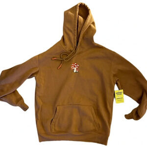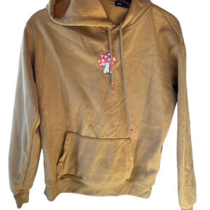 Magic mushroom minimalist copper brown tan hooded hoodie sweatshirt Sz xs