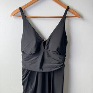 MagicSuit One Piece Swimdress Swimsuit Black Womens Size 14 Front Clasp Banded