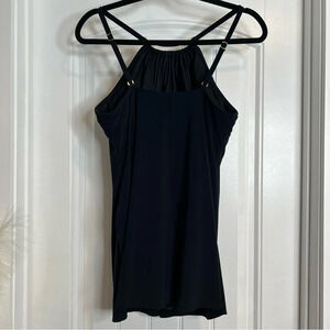 MagicSuit Women's Black Swimwear Parker Tummy Control Underwire Bra Swim Dress. Size 12. Thanks for stopping by! Experience the magic of a comfortable, contemporary look that instantly flatters every curve of your figure. • MAGITEX® fabric provides all over slimming control. High neckline design offers full coverage. Underwire bra with removable soft cup allows you to adjust the level of support. • Adjustable over the shoulder straps allow you to customize the fit, ensuring it's never too loose or too tight. • Order a swimsuit in your usual size unless you prefer a looser fit. • Pit to pit is 16” • Length is 26” from gold collar to crotch • 12” Split skirt for tying to one side V!0601