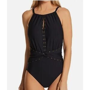 MagicSuit Women's Swimsuit Size 14 Black Riveted Diana One Piece By Miraclesuit