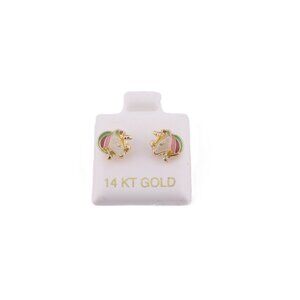 Add a sprinkle of magic to your jewelry collection with these enchanting Women's 14k Gold Mini Unicorn Novelty Enamel Stud Earrings. Expertly crafted from high-quality 14k gold, these whimsical earrings feature a delightful unicorn design, making them a perfect accessory for any occasion. Specifications: Material: High-quality 14k gold Size: Petite and subtle, perfect for everyday wear Closure: Secure screw-post ball backing for comfortable and secure wear Design: Mini Unicorn Stud Earrings These Women's 14k Gold Mini Unicorn Novelty Stud Earrings are not just a cute accessory; they are a fun and stylish way to express your love for all things magical. Whether you are treating yourself or searching for the perfect gift, these earrings are sure to bring joy and become a beloved addition to any jewelry collection.