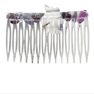 The comb is adorned with a beautiful array of genuine sea glass chips in various shades of lavender and violet.