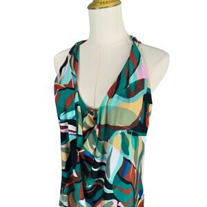 Magicsuit Abstract Halter Tankini Slimming Multicolored Cowl Neck Draped Loose