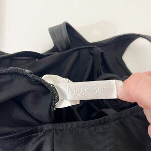 Magicsuit Black Faux Leather Trim Ruched Halter One Piece Swimsuit - Size US 8