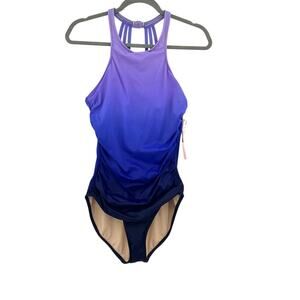 Magicsuit Danika Swimsuit One-Piece Allover Slimming High-Neck Purple Size 14