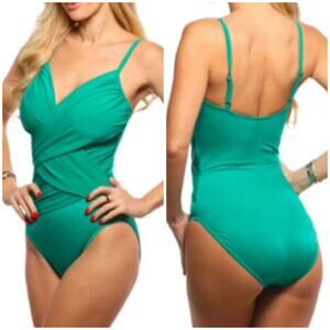 Magicsuit NWT Solids Harper One Piece Swimsuit Green Shirred Draped