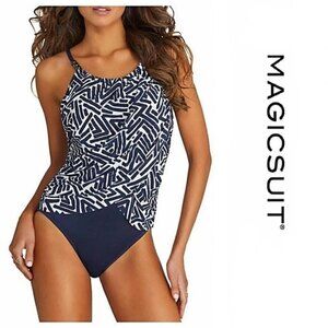 Magicsuit Tiki Lisa One Piece Tummy Control Swimsuit Bathing Suit Navy Blue Sz 8