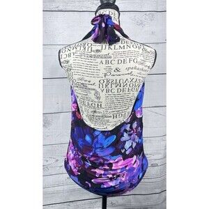 Magicsuit US 12 Divine April Pink Purple Floral Ruched Side Halter Tankini Top