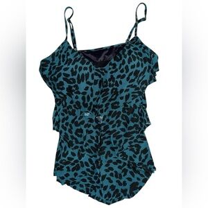 Magicsuit Wild Child Rita Tankini Swim Top Teal Black Leopard Womens Size US 14