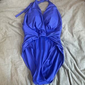 Magicsuit by Miraclesuit Angelina Draped Swimsuit Blue Plunge One Piece Sz 16