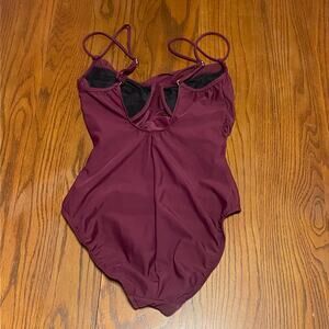 Features a deep wine/maroon color, ruched front for flattering shaping, and adjustable double shoulder straps for customized fit. Built-in underwire cups provide support and lift, while the suit’s tummy control lining helps smooth your silhouette. The back offers full coverage for comfort and confidence.
