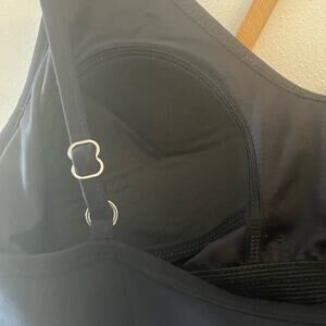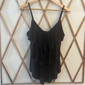 Black tiered Magicsuit by Miraclesuit tankini top. Soft cup support and adjustable straps. Size washed away but measures to an 8