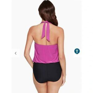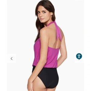 Magicsuit halter draped swimsuit purple & black one piece Women Sz 14 underwire Pinup Girl