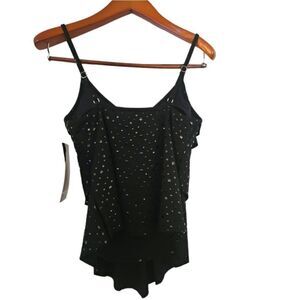 Magicsuit Rita Miracle Swim Tankini Top Black Layered Sequins Size 8, NWT