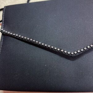 Magid Black Satin Envelope Evening Crossbody, Shoulder, Clutch Purse Rhinestone