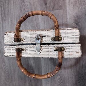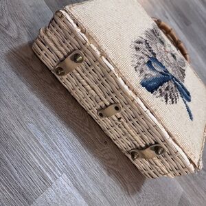 Magid Handmade in Japan Needlepoint Cat Kitten Bow Wicker Bag Purse Unique