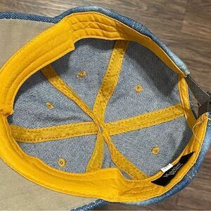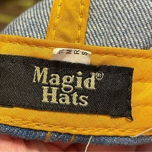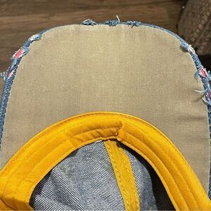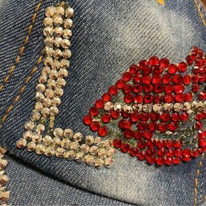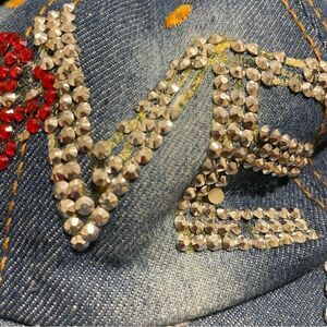 Magid Rhinestone Distressed Denim Love Ball Cap Hat Red and Silver Rhinestones