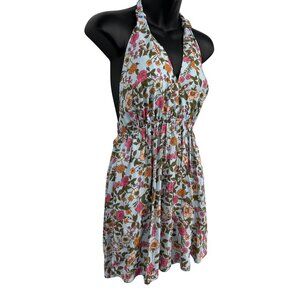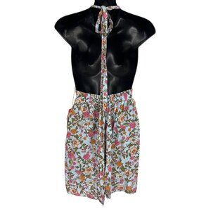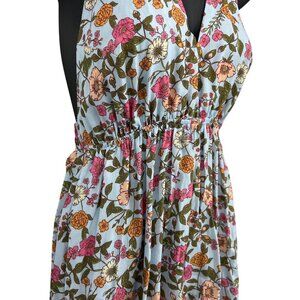 Magii Romper Women Size Medium Blue Pink Floral Halter Pockets Rayon Stretch New