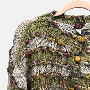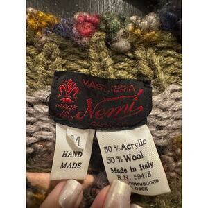 handknit, made in Italy, chunky knit, oversized cardigan, boho chic, rare sweater, wool acrylic blend, artisanal knitwear, vintage inspired, slouchy fit, statement sweater, cozy layering, textured knit, unique piece, Italian fashion, fall winter style, soft knit, relaxed fit, bohemian style