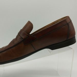 Magnanni Brown Leather Horsebit Strap Apron Toe Loafer Shoes Mens 9.5 M Casual