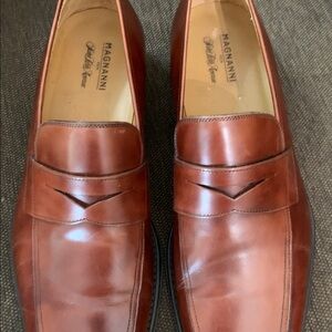 Sleek cognac leather slip-ons by Magnanni. Ideal for stylish events. For Saks Fifth Avenue Size-12-Medium
