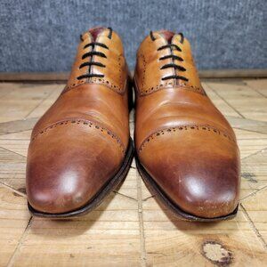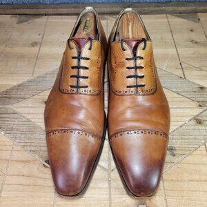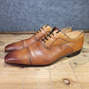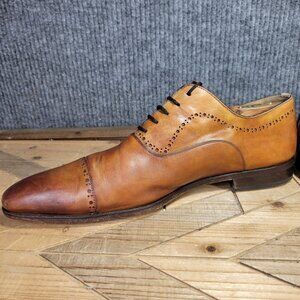 Magnanni For Neiman Marcus Mens 10M Cognac Leather Cap Toe Brogue Dress Oxford