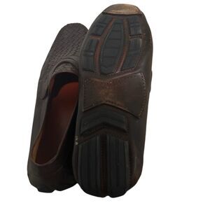 The muse preowned Magnanni loafers are a stylish and comfortable option for casual occasions. They are slip-on loafers in a brown color and made of high-quality leather, with a leather lining and outsole. The shoes feature a classic loafer style with a basket weave upper and comfortable insole. They are ideal for wearing during the summer, fall, and spring seasons. Crafted in Spain by the brand Magnanni, these loafers are a timeless addition to any man's wardrobe. They have no holes stains or flaws.