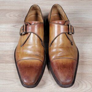 Magnanni Monk Strap Shoes Mens Size 8.5 M Chestnut Brown Leather Cap Toe Dress