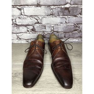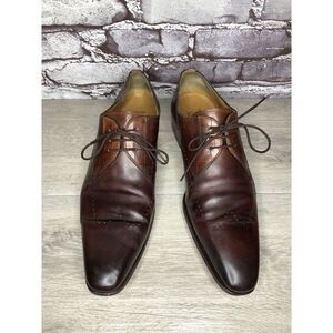 Magnanni Neiman Marcus Burnished Brown Leather Wingtip Dress Shoes Men Sz 10M US