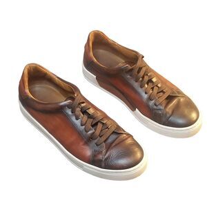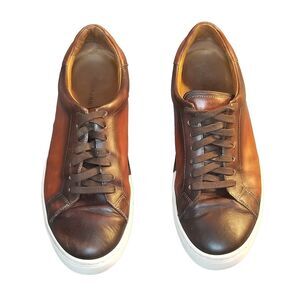 Magnanni Ottawa Men Size 9.5 Cognac Burnished Brown Leather Sneaker Amadeo 22967