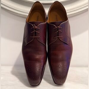 These Magnanni Reko Medallion Toe Derby shoes (Model 20420) were handcrafted in Spain from hand-burnished Italian calfskin leather.