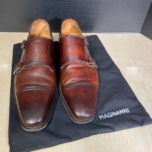 Magnanni Size 9 Silvio Red Brown Leather Double Monk Strap With Travel Bag