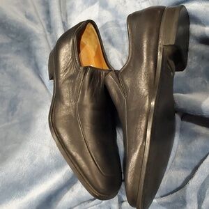 excellent condition no issues size 9.5D black men's slide on loafer square toe dress shoe soft buttery leather by magnanni