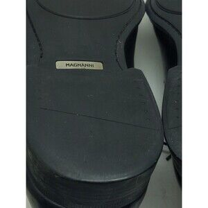 Magnanni for Neiman Marcus 9971 Black Leather Derby Lace Up Shoes are crafted in Spain from high-quality leather with a solid pattern. These stylish dress shoes feature a lace-up closure and a comfortable leather lining and insole. The rubber outsole provides durability and traction, making them suitable for year-round wear in various seasons. Ideal for men in size 12, these sophisticated shoes exude timeless elegance and are perfect for formal occasions or everyday wear.