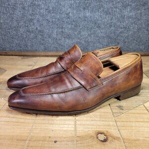 Magnanni for Neiman Marcus Mens 10M Leather Penny Loafers Cognac Brown- 21640