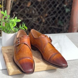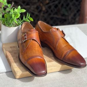 Magnanni🔴cognac leather monk strap shoes men’s Size 8.5 gently used