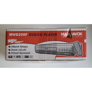 The Magnavox MWD200F is a versatile DVD/CD player with a remote control. It offers search, zoom, and virtual surround features, enhancing your viewing and listening experience. Box has moderate wear with a noticeable tear due to storage, but factory sealed and brand new.