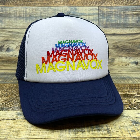 Magnavox Mens Trucker Hat Navy Snapback Defunct Vintage Logo Baseball Cap