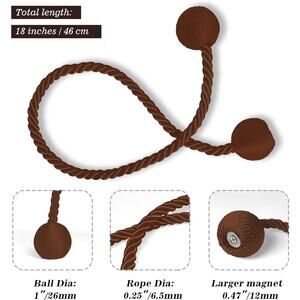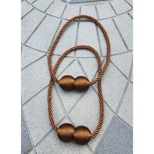 NWOT: Two piece brown or silver magnetic curtain tieback set with spherical end accents / nickel-plated magnets with strong corrosion resistance / soft braided rope made of thickened solid polyester yarn. Multiple two piece tiebacks are available in brown or silver. The magnetic curtain tiebacks are easy to assemble in a variety of decorative styles. In unused intact condition.