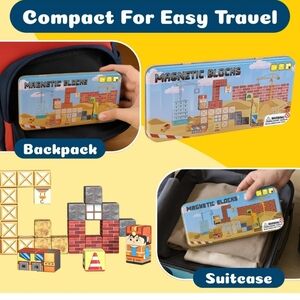 – 35 PCS Mini Magnetic Blocks Toys, Travel Magnetic Construction Set with Portable Iron Box,