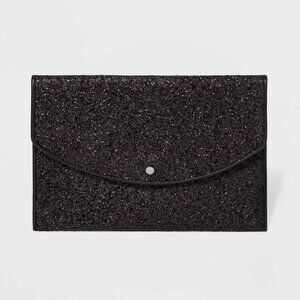 This small, black, glitter clutch from A New Day is perfect for any occasion. Stylish and handy, it features a magnetic closure for easy access.