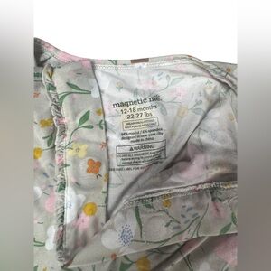 Adorable and super soft Magnetic Me baby girl footie pajamas, size 12-18 months (22–27 lbs), made from breathable, eco-friendly modal fabric. Gorgeous floral print with integrated non-slip grippy feet—perfect for new walkers! Easy magnetic closure for quick changes. Gently worn, excellent condition.